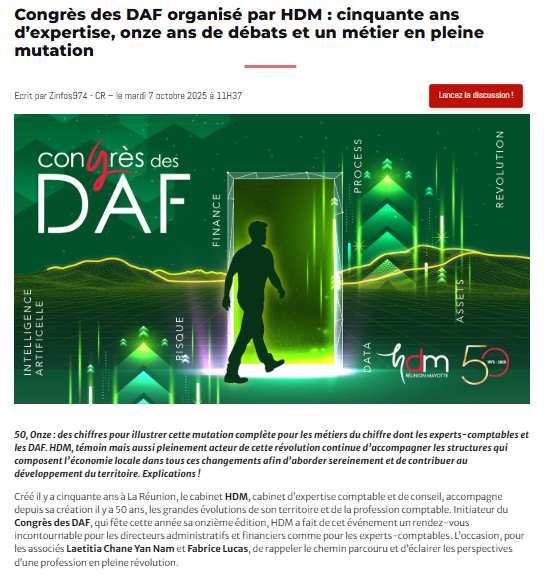« Un nouvel espace d’échanges qui permettra aux DAF de La Réunion de prolonger l’élan du Congrès des DAF » (Extrait de l’article du Quotidien paru le 04/10/2024)